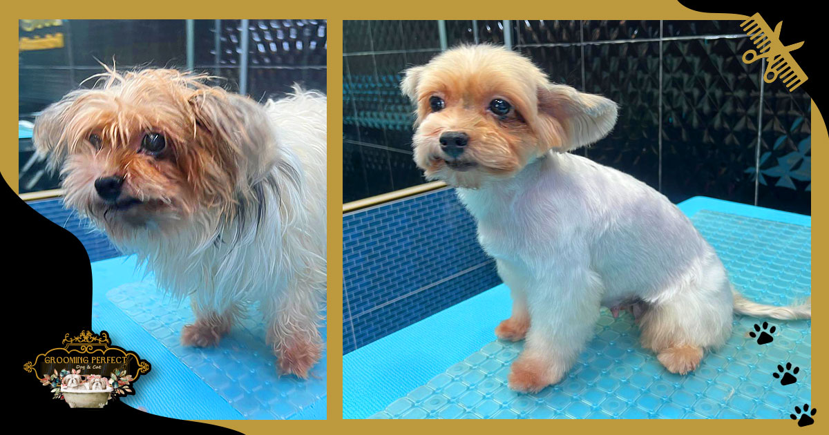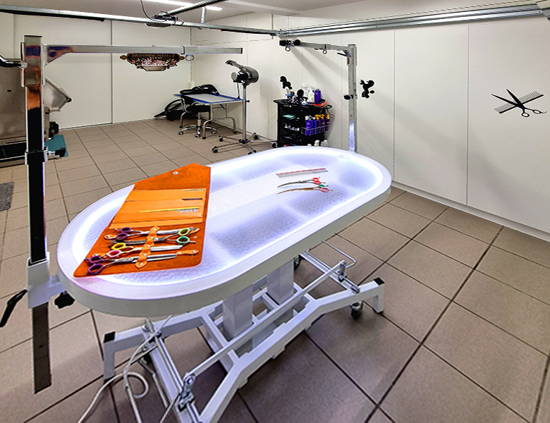 Als finishing touch wordt je viervoeter besproeid met een vleugje eau de parfum.