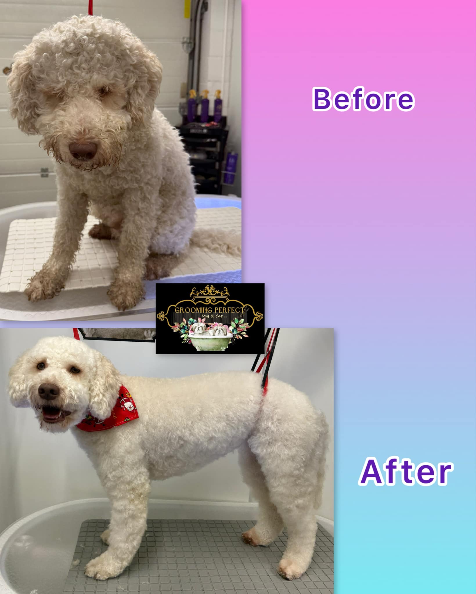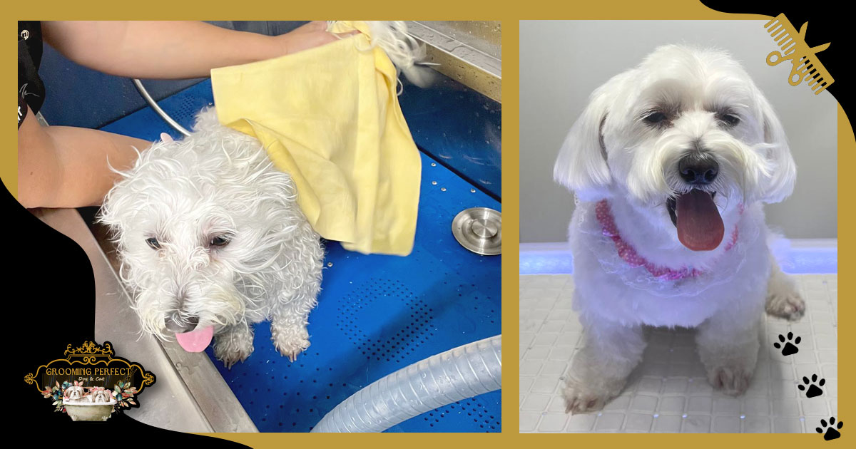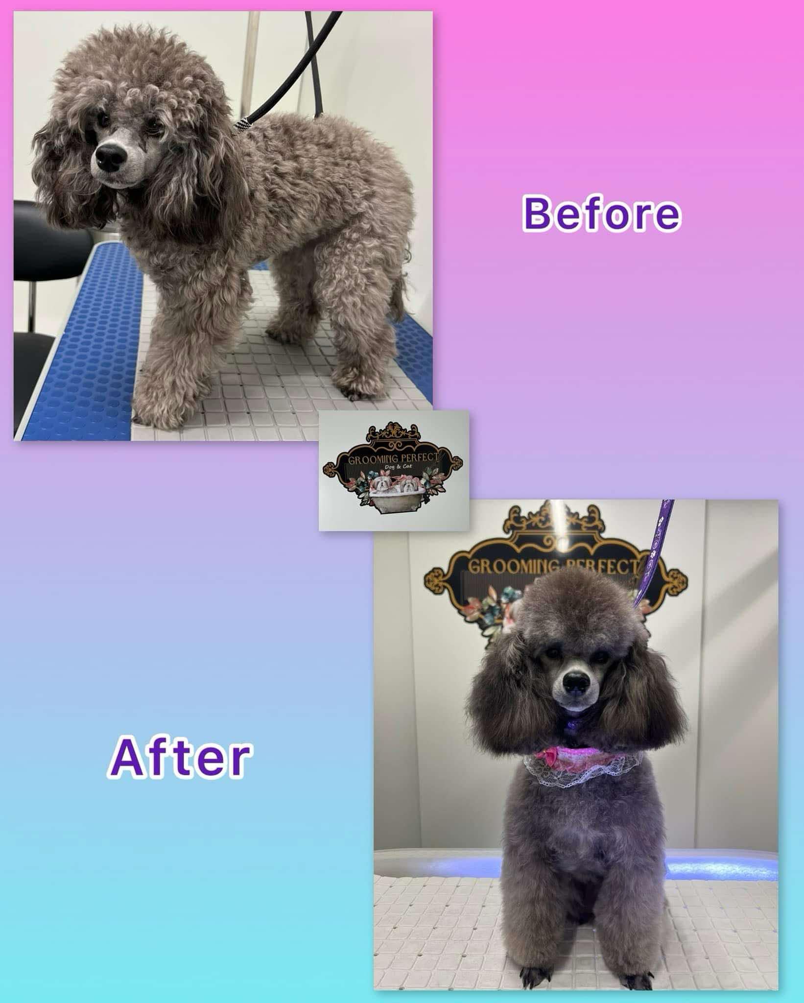 Als finishing touch wordt je viervoeter besproeid met een vleugje eau de parfum.